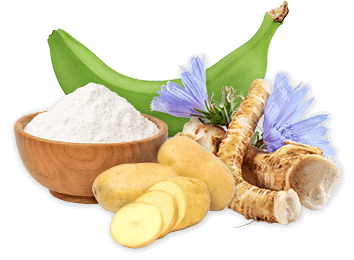 The formula is positioned around resistant starch, prebiotic fibers, probiotics, and plant-based ingredients intended to support the gut microbiome, improve digestive balance, and help manage cravings as part of a broader wellness routine.